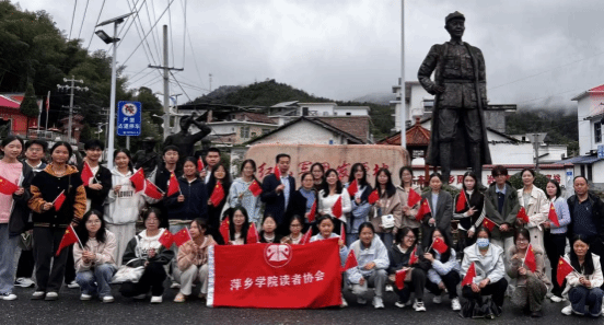 2025年11月9日清晨8:30,萍乡学院图书馆读者协会组织校内30余名会员,与图书馆馆长张义良、副馆长雍飞玲等党员教师一同抵达红六军团发源地。在讲解员的深情讲述中,大家沉浸式聆听烈士壮烈故事,感受“革命理想高于天”的精神伟力。参观结束后,全体师生面向烈士铜像重温入团誓词,铿锵誓言在广场久久回荡。
