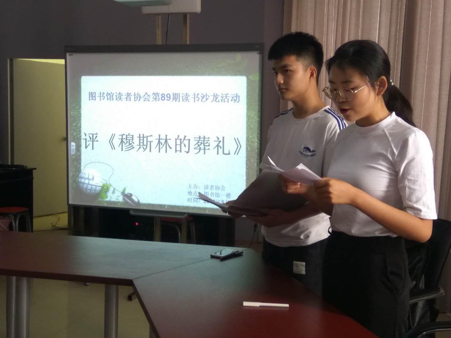 2018年5月18号中午12:30,读者协会在图书馆一楼情景阅览室开展了“评《穆斯林的葬礼》”的阅读推广主题活动,读者协会指导老师李小玲及全体读者协会成员参加了此次活动。