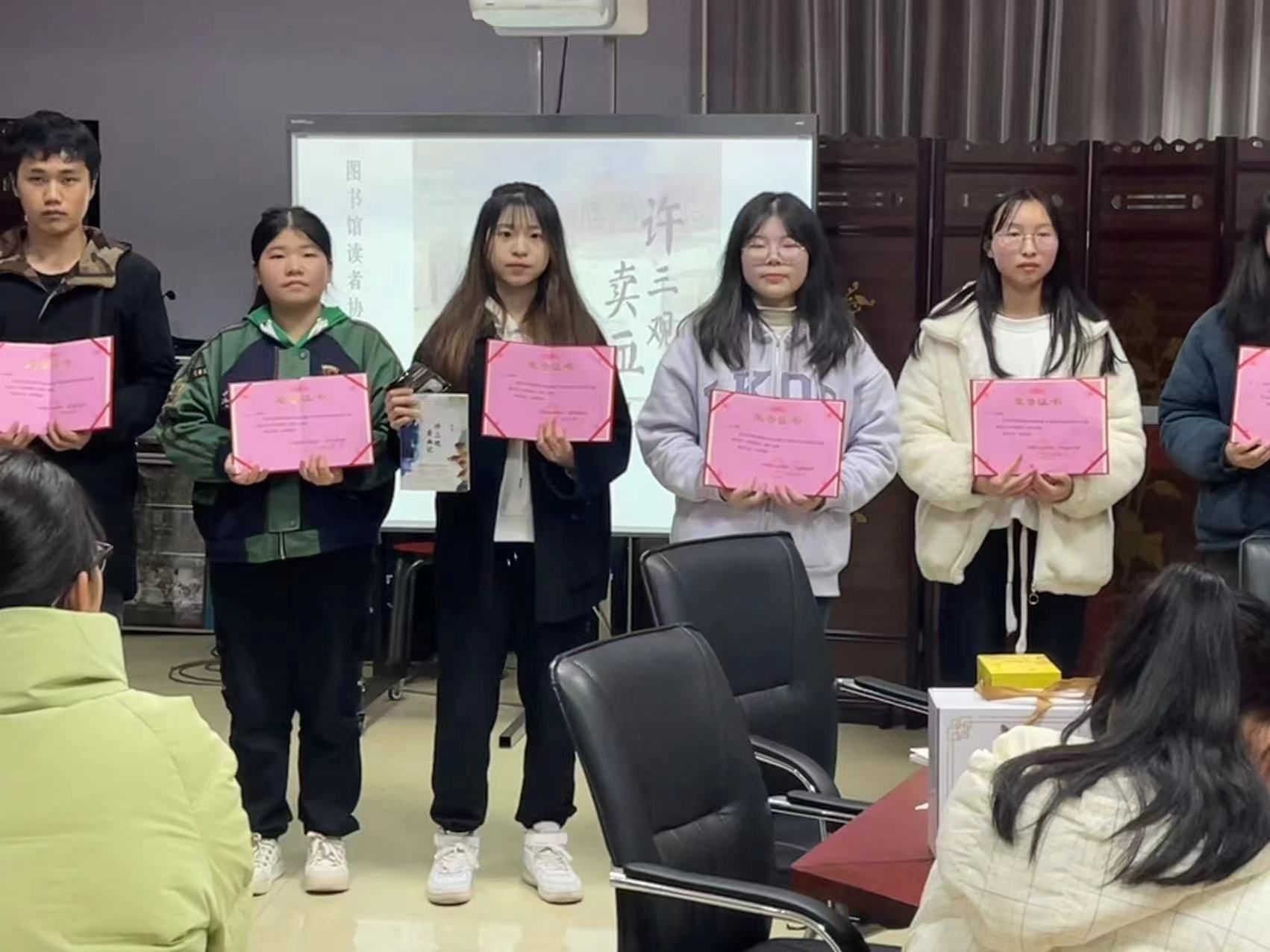 活动最后,张莹老师对本次活动作了总结,谈及许三观12次卖血过程的心路历程变化及许三观所折射出的人物光辉——正直、淳朴及朴素真挚的爱。本次活动由协会成员共同投票评出6位“读者之星”,分别是一等奖李雨欣(中本2102班),二等奖张馨月(中本2102班)、谭飞阳(机电2201班),三等奖廖一延(中本2101班)、钟礼礼(旅管2101班)、吴蔚霞(思政2201班)。(读者协会供稿)